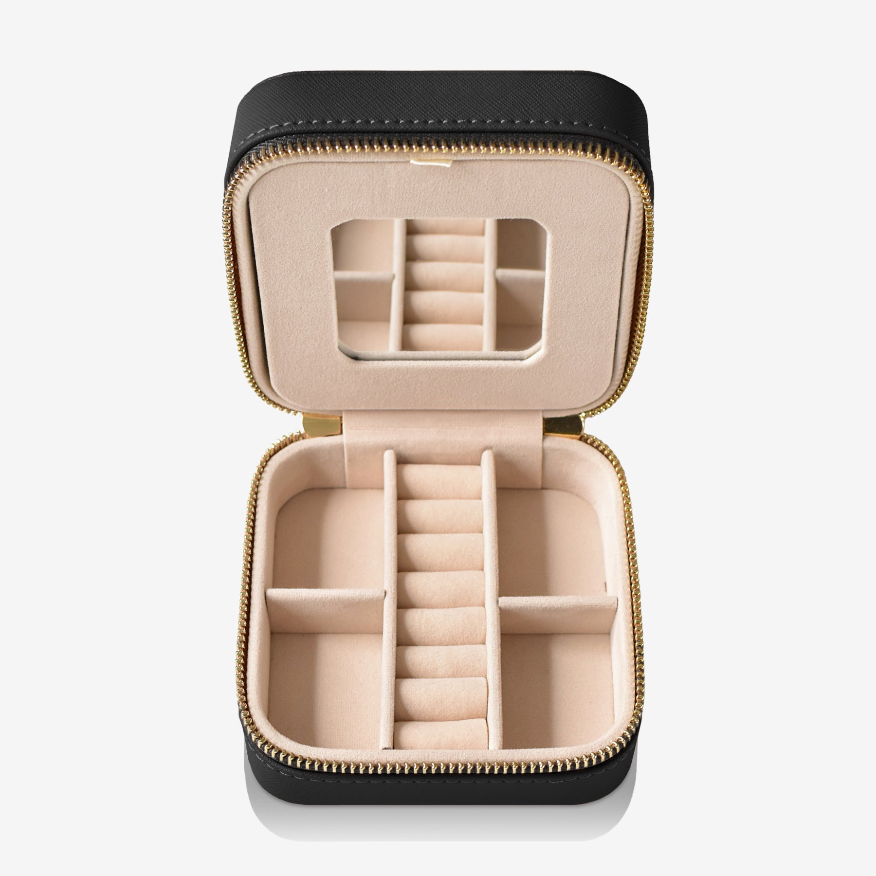 This small Jewellery Travel Case is the perfect travelling companion for all your jewellery needs. Its compact size and mirror make it easy to store and apply jewellery on the go.