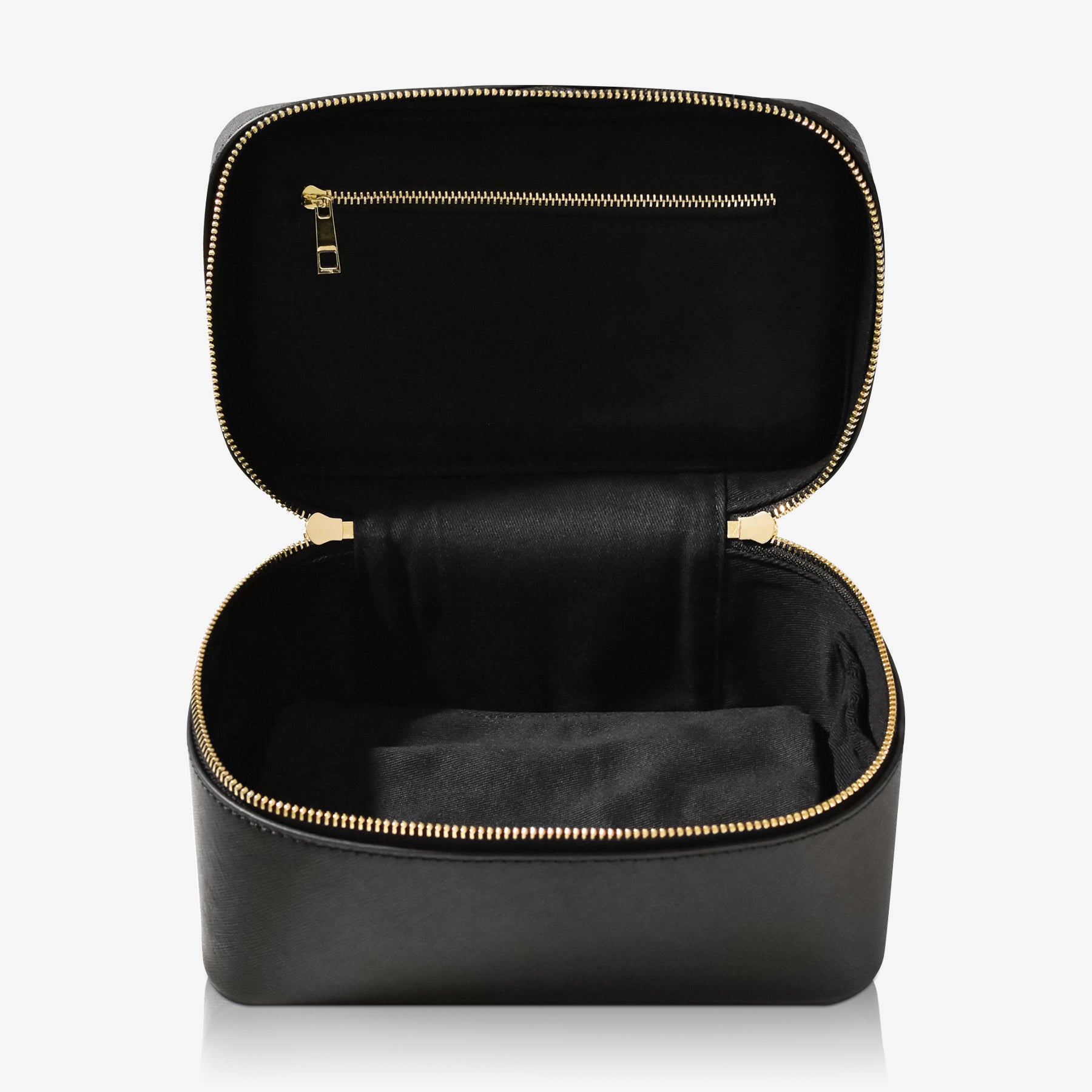 Our vanity case is the perfect companion for your beauty routine, wherever you may travel. Made with saffiano leather, its personalised finish adds a unique touch to your beauty regimen. Features an internal zip and includes 2 zip pouches.